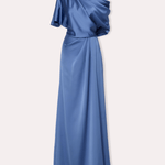 Akıcı drapeleri ve yere kadar uzanan tasarımıyla dikkat çeken, tek omuz saten bir elbise. Lüks kumaşı ve zarif siluetiyle resmi davetlerde sofistike bir görünüm sunar.